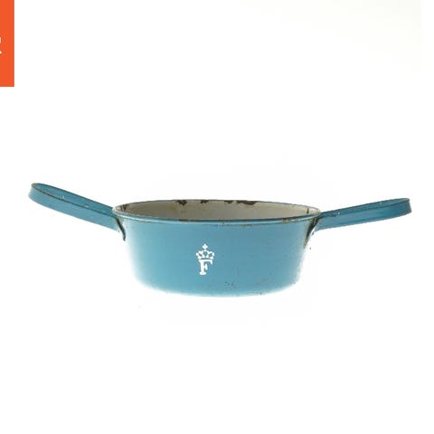 Denne metal si har en diameter på 19 cm og er blå med hvid inderside. Den er rund og har to håndtag for nem håndtering. Bunden er perforeret, hvilket gør den ideel til at dræne væsker fra madvarer.