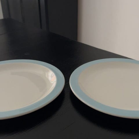 W.H.Grindley 4 tallerkener engelsk porcelæn samlet 50 kr "Sunday Morning"