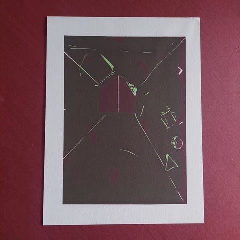 Kunstplakat efter linoleumsnit af Mogens Kølkjær. Utrolig smuk farvesammensætning. Udgivet af Brøndums Forlag og Sammenslutningen af Danske Kunstforeninger i 1991.