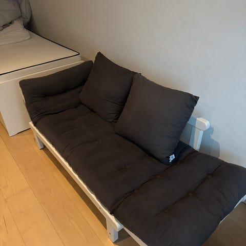 BEAT Sofa bed tilføjer et strejf af enkelhed og luftighed til ethvert rum, hvor du placerer den. Med armlænene oppe skaber futonmadrassen af høj kvalitet en indbydende rede af blødhed, hvor man kan sidde alene eller sammen med en anden. Sænker du det ene armlæn med en hurtig og let bevægelse, får du en loungestol, hvor du kan strække dig ud, dagdrømme og koble fra. Lægger du det andet armlæn ned, får du en enkeltseng. Vær opmærksom på, at alle vores futonprodukter er håndlavede, og der kan derfor forekomme små variationer i mål og vægt.