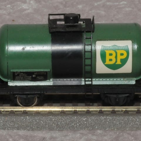 Tankvognen er brugt og har brugsspor i form af lidt støv/snavs samt rust på koblingerne og gelænderet for enden af vognen. Koblingerne passer til Märklin bøjlekoblinger.
