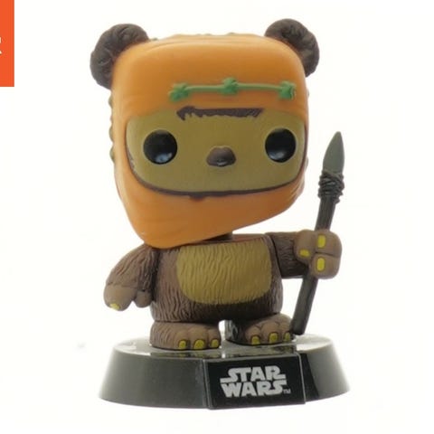 En 12 cm høj figur af en Star Wars Stormtrooper, med det karakteristiske sorte og hvide panser. Figuren står på en sort sokkel med 'Star Wars' logoet. Den har en lyseblå elektrisk stav i hånden.
