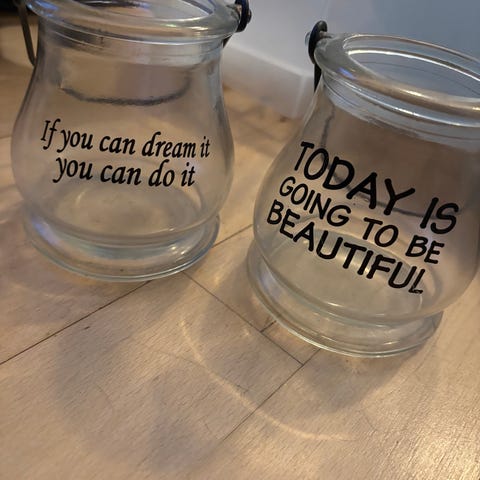 Et par dekorative lysestager / lanterner af glas, der hver måler 12x10 cm. De har et unikt udseende med et komplimenterende hvidt dekorativt design, der ligner grene med snefnug og efeu blade, som om de er dækket af frost. Dette giver dem et vinterligt og elegant look, velegnet til at indgå som en del af en vinter- eller julepynten.
