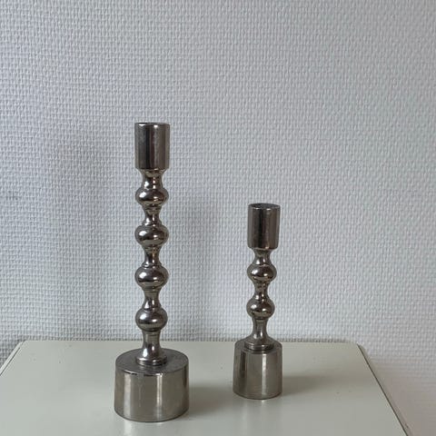 Lysestager i sølvfarvet metal (str. Ø 8 cm)