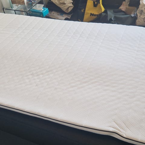 Jysk seng med madras og ben. Topmadras er 5 cm. Velholdt. Fra ikke rygerhjem