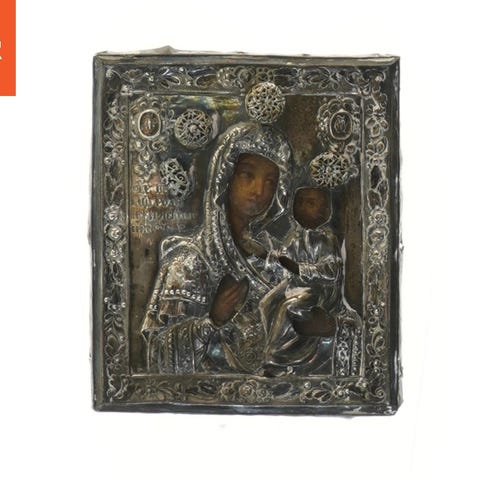 Dekorativ indgraveret motiv, placeret på en rektangulær sokkel. Den har et detaljeret design med fremhævede elementer, der repræsenterer Jerusalem. Lavet af sølv 925 med en glansfuld finish. Der er en mærkat på bunden med teksten 'H.Karshi Jerusalem 925 silver'.