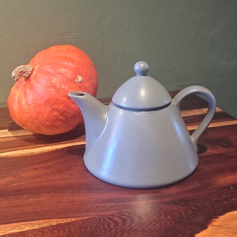 Denne sorte keramiske tekande har en diameter på 20 cm og er designet med et enkelt håndtag på siden. Den har en glat overflade og en aftagelig låg, som kan bruges til at holde teen varm. Kanden har en klassisk tude for nem hældning.
