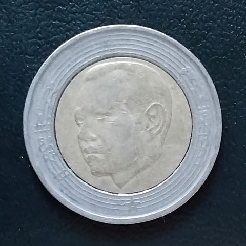 MAROKKO MOROCCO BIMETALLIC 10 DIRHAMS 1995 (1415) Hassan II. Stor Mønt! 10 Dirhams 1415 (1995) Hassan II 1415 (1995) Bimetallic: copper-nickel center in aluminium bronze ring • 12 g • ø 28 mm. Porto 25kr. Op til 100gram!
