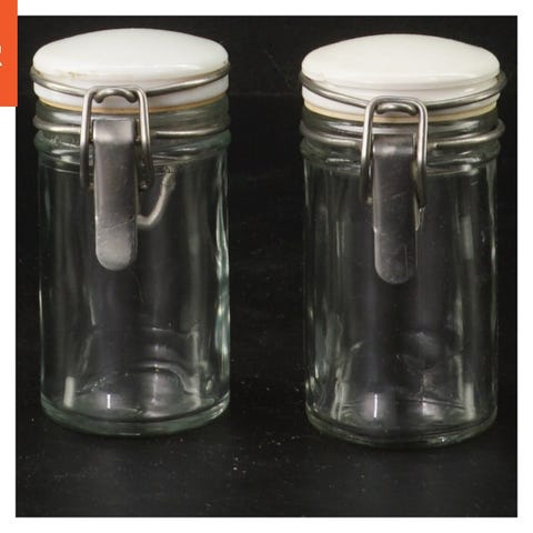 Krukke i glas med låg, formet som en sekskant. Krukken har et klart design og er velegnet til opbevaring af små genstande eller som dekoration. Låget er detaljeret og passer perfekt til krukkens form.
