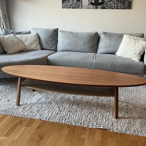 Oval bordplade, fremstillet af valnøddetræsfiner.