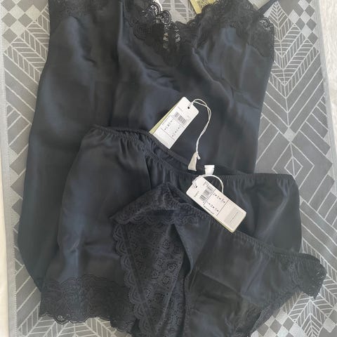 Leggings er i størrelse medium med lynlås. Nypris er 140 gbp.