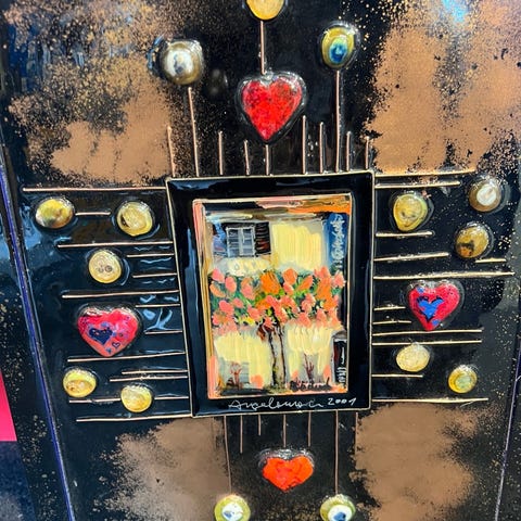 Sælger Et originalt vægrelief i metal af Giovanni Schoeman, signeret og dateret ’75. Modernist/brutalist 70’er-stil med skulpturelle “foldninger” i messingfarvet metal og en detaljeret cityscape/skyline i mixed metals.