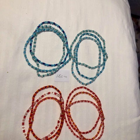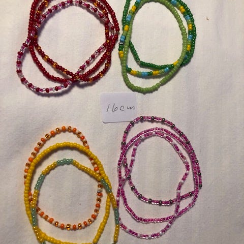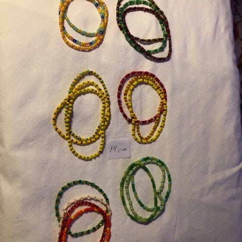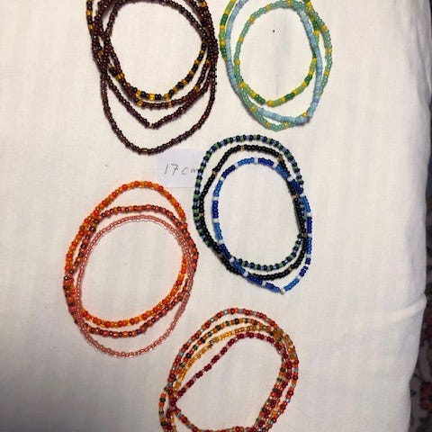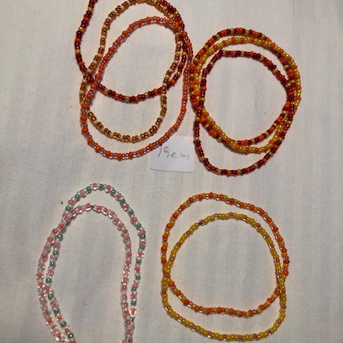 Armbånd med elastik med omkreds på 15 cm. armbåndene er i grønlandske perler.( 1 stk. koster 10 kr. 3 stk. 25 kr.) ( mål håndledet og læg ca. en halv cm til så det ikke stammer).