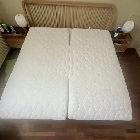Skøn topmadras, kun brugt få måneder, men er nødt til at skifte til en specielt udformet madras efter min mands rygoperation. Betræk kan vaskes ved 60 gr. og har skridsikkert underlag.