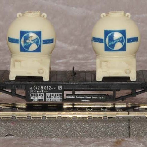 Vognen er brugt. Bortset fra lidt pletter på taget af containerne, fremstår vognen i pæn stand. Koblinger passer til Märklin bøjlekoblinger.