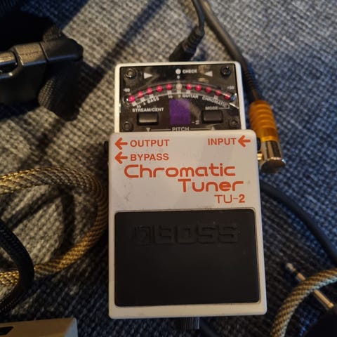 Boss Chromatic Tuner TU-2 guitar tuner med kromatisk tuning. Enheden har input og output stik og en bypass funktion. Farve: hvid.