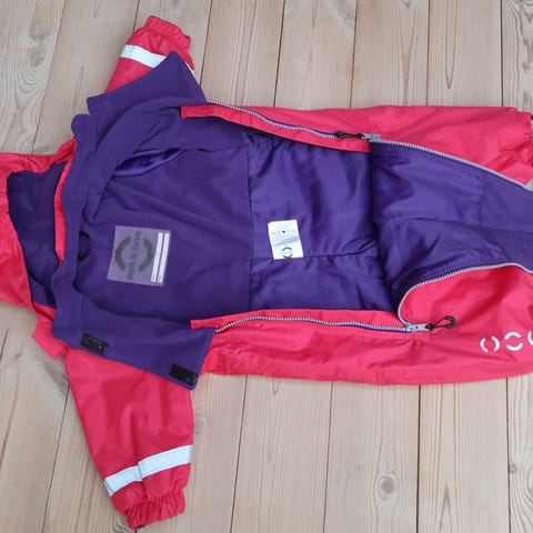 Lilla Color Kids flyverdragt str 92 - 98/ 104 - kraftig lynlås, stropper ved fødder og hat som kan knappes af. Lynlåsen er repareret lidt aller nederst, men det har ingen betydning for funktionen. PRIS - 95 KR.
