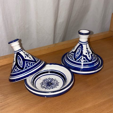 Keramik, 2 Taginer fra Marokko, Højde. 12 og 13 cm