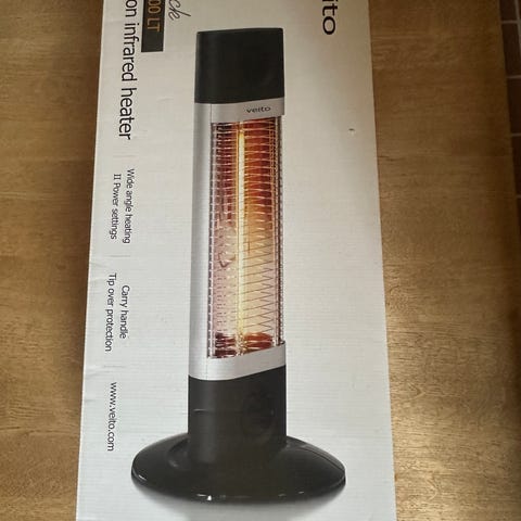 Terrassevarmer, Veito, Alu, 2000 w terrassevarmer med fjernbetjening. Kan indstilles i 4 niveauer 800/1200/1600/2000 w. Du kan indstille den på tid op til ni timer, og bruger du den indendørs kan den stilles på grader. Den har en tipoverfunktion som gør terrassevarmeren slukker automatisk hvis den vælter. Varmelampen varmer med det samme og har en varmevinkel 60 gr. Den kan hænge lodret, vandret, på væg, loft, markise eller parasol. Den er i matalu eller matsort. Varmer 30 m2 indendørs og 14 m2 udendørs. Der findes teleskopstandere til dem. Kan også leveres i 1200w og 2500w
