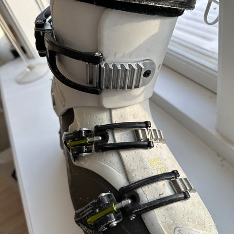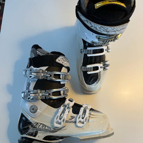 Salomon Quest skistøvler med størrelse 24/25 og en sållængde på 285 mm. Skistøvlerne er designet til alpint skiløb og har justerbare spænder for en sikker pasform.