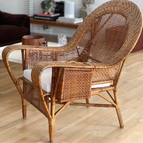 'Canton chair' tegnet af Kai Fisker og produceret af R. Wengler. Fletstol fremstillet i naturfarvet rattan. Stolen har god lændestøtte og med vævet fletmønster uden skader. Fodskammelen kan skubbes ind under stolen.