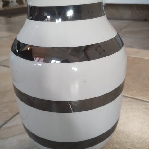 Kähler vase med sølv og hvid stribet mønster