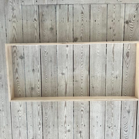 Hjemmetlavet sokkel i mdf . Brugt til skab for at få selve skabet over listerne.