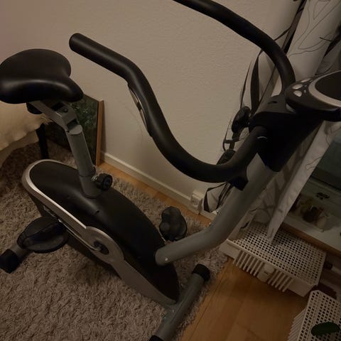 Motionscykel, ideel til genoptræning. Displayet virker ikke, men modstand og pedaler fungerer upåklageligt. Sædet kan justeres op og ned samt frem og tilbage. Udstyret med hjul, så den er nem at flytte.