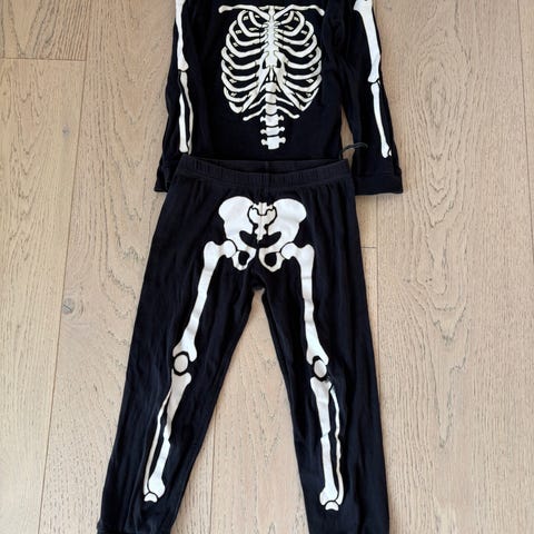 Nattøj / udklædning med skelet. Skelettet er selvlysende i mørke.
