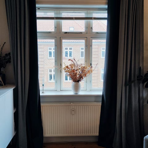 Alt er i god stand og uden skader. Har hængt i røgfrit hjem. Giver et mørkt, roligt udtryk med mulighed for let lysindfald gennem netgardinerne.
