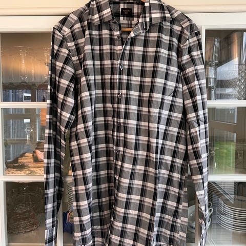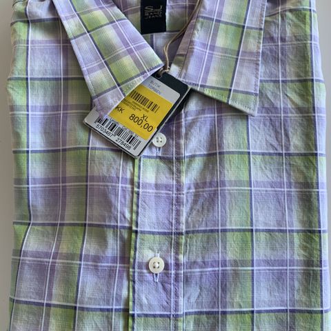 Eksklusiv herreskjorte fra Sand i lilla, bordeaux og lyseblå tern/striber. Klassisk krave, lange ærmer og flot tailored pasform. Indvendig krave med dekorativt blomsterprint og fine kontrastdetaljer ved knapperne.