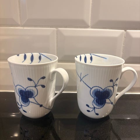 Royal Copenhagen Blue Fluted Mega og White Fluted krus 37 cl 4 stk