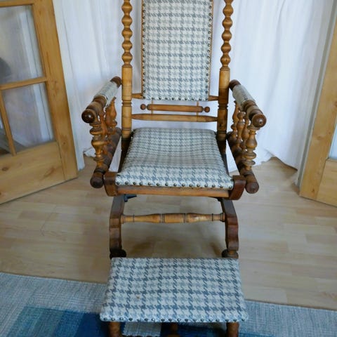 Rokkestol i egetræ med broderet stof