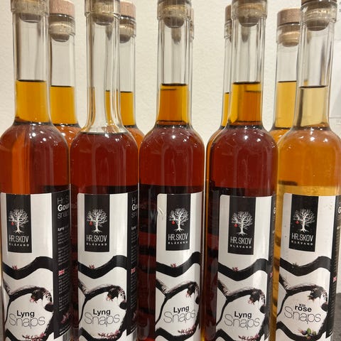 Lyng Gård Likørflasker i forskellige varianter. Flaskerne indeholder likør med forskellige smagsvarianter og er pakket i klare glasflasker med etiketter, der angiver smagen. Velegnet til samling eller brug ved særlige lejligheder.