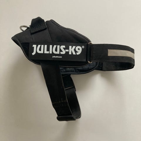 Julius-K9 IDC sele til hund. Selen har justerbare stropper og er designet til hunde med halsmål 46 cm, velegnet til hunde i vægtklassen 9-12 kg. Materialet er slidstærkt og egnet til udendørs brug. Se mål på billedet.