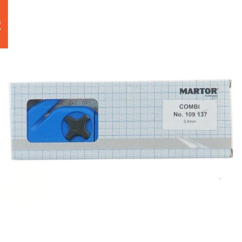 Sælger et sæt bestående af 5 stk. Martor sikkerhedsknive samt en bunke arbejdshandsker med skridsikre dupper.