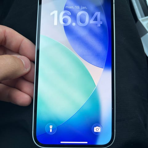 Perfekt Iphone 16e med nyt originalt apple cover i farven grøn.