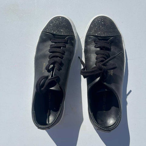 Meget velholdte sneakers (brugt 2 gange) fra Axel Arigato str. 38 i hvid læder m/rosa, lavendel og grå kontrast. Nypris kr. 2350 (har original æske og dustbag)