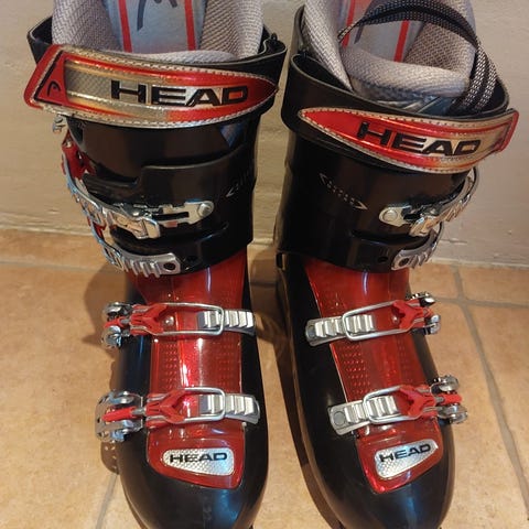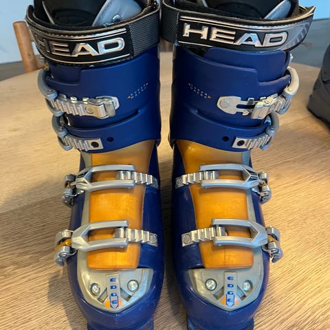 Head Nexo LYT 100 skistøvler i størrelse 25,5 med neongul/grøn og hvid farve. Skistøvlerne har fire spænder og er designet til alpinski. Materialet er robust og egnet til vintersport. Nypris 2499,- super støvle som er blevet for lille