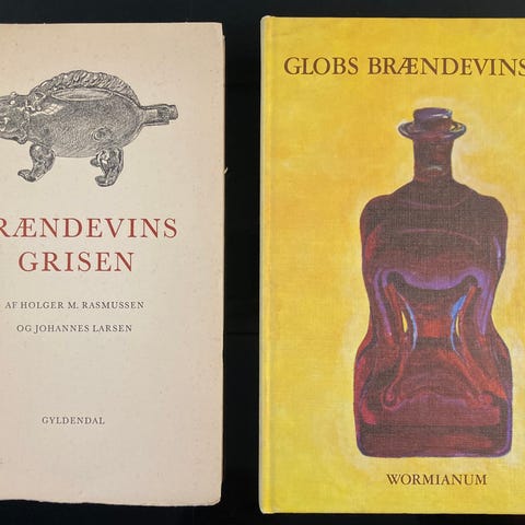 Globs Brændevinsbog og Brændevinsbogen af Holger Rasmussen ig Johannes Larsen. Sælges samlet (for kr. 80)eller enkeltvis. Afhentes. Evt. fragt betales af modtager. Pr. stk