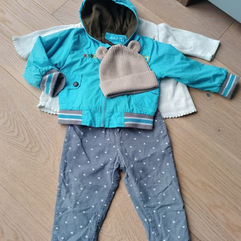 134, fleecejakke, striktrøje, bukser m.m