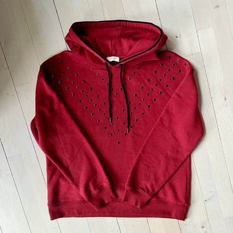 Lækker nærmest ny hoodie m/tyk hætte og snore. Længde skulder og ned 57 cm og indvendig ærmelængde 50 cm. Nypris omkring kr. 1300
