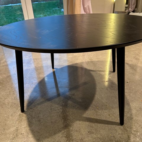 Sofabord i god kvalitet med egetræslignende overflade og “guld” ben. Det er ikke massivt egetræ, men gedigent lavet. Der er synlige brugsspor som vist på billederne, men ikke noget der skæmmer fremtoning.