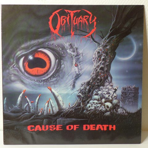 Andre originale vinylplader fra samme samling i vores butik inkluderer Annihilator, Athiest (3), Body Count, Boss, Carcass (2), Cathedral, Celtic Frost, Coroner, Dark Angel, Death (3), Death Angel (2), Deicide, Dimau Borgir, Entombed (4), Europe, Exodus, Forbidden (2), 4 Non Blondes, Guns n. Roses, Kashmir, King Diamond, Kiss (3), Malevolent Creation (2), Master, Metallica (6), Mirage, Nuclear Assault, Obituary (3), Overkill (2), Pantera (3), Pearl Jam (3), Pestilence (3), Poison, Primus, Red Hot Chili Peppers, Sabbat, Sacred Reich, Scorpions, Skid Row, Solitude, Soundgarden (5) Stone Temple Pilots, Smashing Pumpkins, Suicidal Tendencies, Temple of The Dog, Testament (6), Therion, Tool, Unleashed (2), Venom, Violence, Witch, blandt mange flere metal, rock, trash, grove, heavy metal, hard rock, Speed Metal, Thrash Metal, Power Metal, Death Metal, Melodic Death Metal, Technical Death Metal, Brutal Death Metal, Slam Death Metal, Black Metal. First Wave of Black Metal, Pagan Metal, Rock