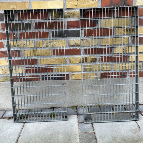 Galvaniseret stål gitterrist med målene 148x60x14. Højden er inkl ben.