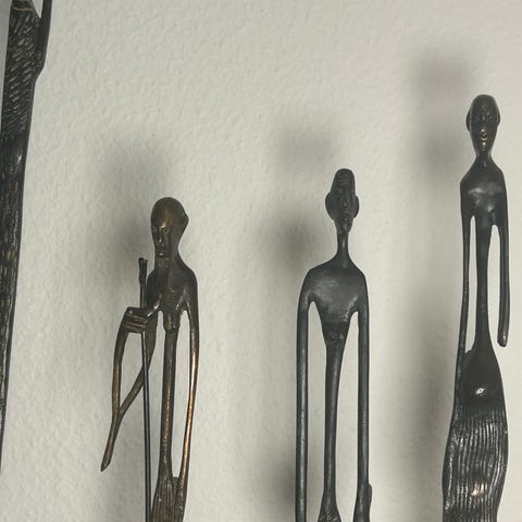 Unik, mandshøj slank mandsfigur fra Makonde-stammen i Tanzania - som menes, at have inspireret den verdensberømte kunstner Alberto Giacometti, kendt for hans høje slanke bronze-statuer (hvoraf én befinder sig på Torvet i Holstebro).