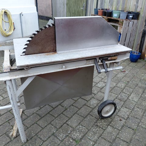 Brænderundsav i god stand, med lidt afskalling/overfladerust på det ene ben.