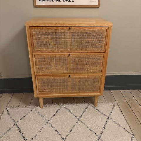 I’m selling a completely new dresser, only unpacked from the box never put anything inside. ATTENTION: The drawers are clic clac and they don’t close properly - jump back out when you try to push close them. It arrived like that and I guess it’s an easy fix but since it doesn’t fit my bedroom anyway I decided not to try and spend time on fixing. I got 50% compensation from the merchant that’s why the reduced price.