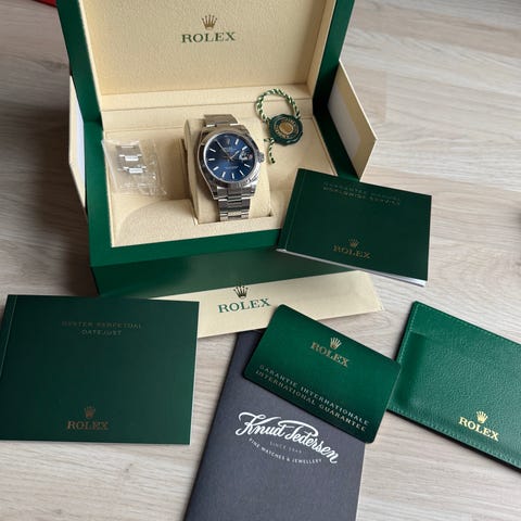 - Tilbehør: Original sleeve + yderboks + original boks + certifikat + hangtag + lynettebeskytter + Datejust og garanti booklets.