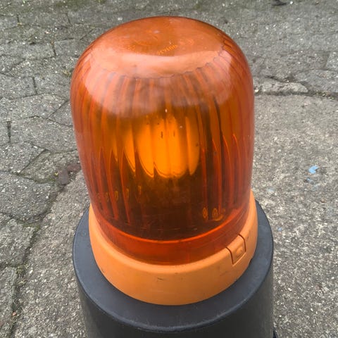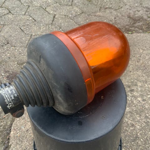 Rotorblink med orange kuppel. Lampen er fremstillet i Tyskland og anvendes til advarselsformål, typisk på køretøjer eller maskiner. Til stangmontering.